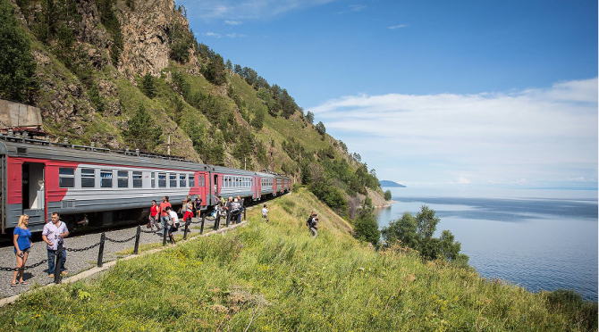 冬場は運行しない、夏限定のバイカル湖岸鉄道観光。