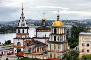 イルクーツク市内観光。円形の噴水が美しい「キーロフ広場」や、白壁と緑のドームが美しい「スパスカヤ教会」や、天井から壁面にかけてびっしり描かれた壁画がすばらしい「バガヤヴリェーンスキー聖堂」をご見学、13〜15世紀のイルクーツクの古い街並みを再現した「130地区」では木造家屋にレストラン、カフェ、みやげ物店があり、見て歩くだけでも楽しい。夕食後、イルクーツクのホテルに向かいます。イルクーツク泊。
