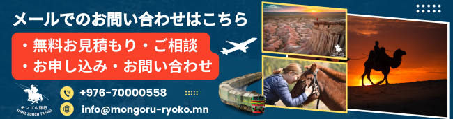 モンゴル現地ツアーのご相談とお見積もりはこちらからメール:info@mongoru-ryoko.mn