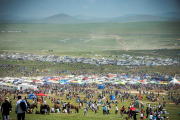 ナーダムとはモンゴルの言葉で祭りを意味する。モンゴル各地で年に数回行われているが、最大のナーダムは首都ウランバートルで開催される国家主催のもの。革命記念日である7月11日から3日間、モンゴル相撲、競馬、弓射の三つの競技が行われる。各地から選手が集まり、相撲には500人もの力士が参加。また競馬の騎手は6歳以上の子どもが務めるという特徴があり、約400頭の馬が参加する。騎馬隊のパレードや馬頭琴の演奏、民族舞踊などもあり、モンゴル民族の重要な祭典。