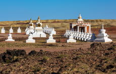 朝07時、専用車にて大草原のツェンケルへ移動。約5-6時間。日馬富士ミルクファームにてアイスクリームを楽しみください。途中で2代目皇帝オゴダイハーンの築いたモンゴル帝国の古都カラコルム遺跡へ移動。かつて世界の中心地となった都の跡地に、今も108の仏塔に囲まれるエルデニ・ゾー寺院があります。花崗岩の亀石(亀跌)も見学。カラコルム博物館見学後、専用車にてツェンケルへ向かいます。到着後、フリータイム。草原に湧く温泉がお楽しみください。 |
