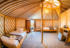 午前:フブスグル湖で行動と共にする愛馬とともに遊牧民(指導員)よりレクチャーを受けます。その後、キャンプ地を拠点に乗馬トレッキング体験へ。遊牧民が皆様の上達レベルを把握し、それに合わせて無理のないコースやスケジュールで乗馬トレッキングをしていきます。 午後:フブスグル湖で湖上遊覧などをお楽しみ頂けます。ボートで湖を遊覧。夕食後、天然の天体ショーをお楽しみください(天候によりご覧いただけない場合がございます)。 「ツーリストキャンプ宿泊」 |
