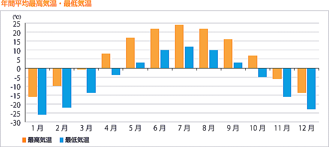 又、非常に乾燥しているので、日中は帽子をかぶり、水分補給を忘れずにしてください。9月後半から冬の気候に移り変わり、10月から3月初旬までは雪が降ります。真冬は氷点下30度まで冷え込みます。乗馬などアウトドアを楽しむには5月から10月上旬までがおすすめですが、冬の真っ白大草原で乗馬や犬ぞりなどが楽しみです。